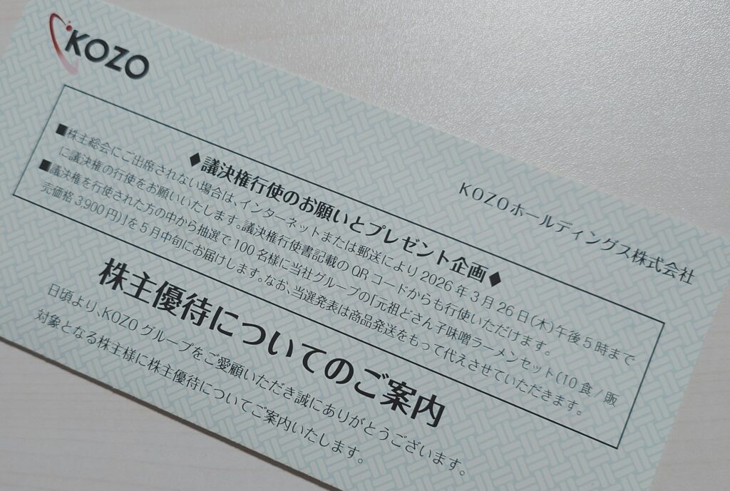 評価損500円をクーポンで相殺。KOZOホールディングス(9973)100株の生存記録(2026.3時点)【自分株式会社:保有資産04-4】