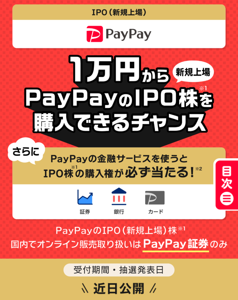 楽天をメインにしつつも、PayPay証券の動向は無視できません。