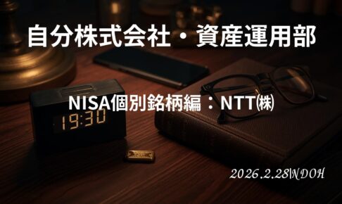 自分株式会社・資産運用部リボ払いの地獄で買った「一筋の光」——NTT(9432)100株の生存記録(2026.2時点)【自分株式会社:保有資産04-1】 2026.02.28 tt04194111@gmail.com1. 執行状況(2026年2月28日公開時点) 「自分株式会社」の財務が崩壊し、リボ払いという底なし沼に沈んでいたあの日。私は震える手でこの株を100株だけ買った。それが、今の私を支える最強の家臣となっている。 項目 ス…